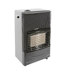 Calefactor portátil deluxe de gas lp, infrarrojo, en color negro. Cuenta con encendido electrónico, doble sistema de seguridad (sensor de oxígeno y apagado piloto), quemador infrarrojo de 3 placas que le da una cobertura de 30 m2, parrilla cromada, gas portátil. Incluye regulador y ruedas para una fácil transportación.