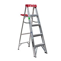 La Escalera Cuprum de 5 pies de altura es ideal para actividades domésticas y comerciales. Está fabricada en aluminio y cuenta con 4 peldaños que permiten al usuario un alcance máximo de trabajo de 2.86 metros. Tiene una capacidad de carga de 150 kg máx. e incluye la innovadora tapa ProTop con múltiples ranuras para colocar herramientas. charola multifunciones. Tacones con suela de goma que previenen derrapes. peldaños con superficie antiderrapante y tirantes anti pellizcos. Cumple y excede las normas de calidad y seguridad ANSI y OSHA. Uso comercial T-III