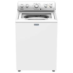 Lavadora blanca Maytag 20 Kg de carga superior, medidas 109.2 cm de largo, 71 cm de ancho y 69 cm de profundidad. Cuenta con Agitador HE PowerWash, 11 ciclos automáticos para tu mayor comodidad que se adaptan a las necesidades de tu hogar Power Wash, Blancos, Prendas Voluminosas, Normal, Control de Arrugas, Lavado a mano, Lavado en Frío, Remojar, Enjuagar/Exprimir, Drenar/Exprimir. Limpieza de Lavadora con Affresh. Además de depósito automático de detergente, depósito automático de blanqueador y depósito automático de suavizante. 5 perillas, nivel de agua (Auto Sensing o Lavado profundo /Deep Water), 5 temperaturas, 3 niveles de suciedad, Opción 1 o 2 enjuagues con o sin Suavizante, tapa de cristal templado, canasta 100% de acero inoxidable, velocidad de centrifugado, 700 RPM, 120 Volts, consola color Plata.