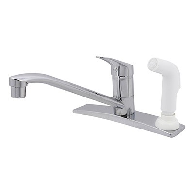 Llave mezcladora para cocina Eva 8 pulgadas cromo pulido Flowell, cuenta con rociador extraíble que facilita la limpieza de la vajilla por su sistema de rociado en spray. Es compatible con tarjas de tres orificios centrales de 20.3 cm, su cuerpo de latón brinda gran resistencia ante el impacto y su recubrimiento de cromo evita la formación de óxido, incluye cartucho de disco cerámico. Trabaja en presión baja, su sistema de monomando facilita la apertura y cierre del paso de agua en un solo movimiento, cuenta con discretos indicadores de temperatura en rojo y azul.